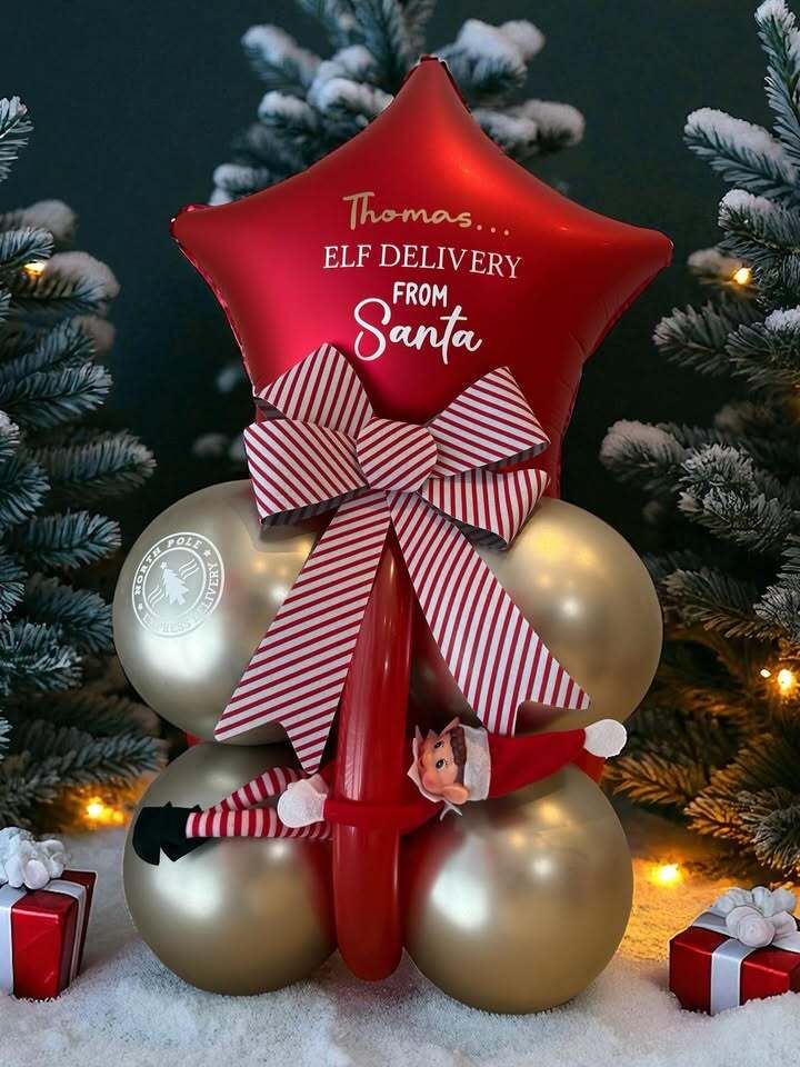 For a grand entrance with wow-factor, try a balloon delivery setup — straight from Santa’s workshop!