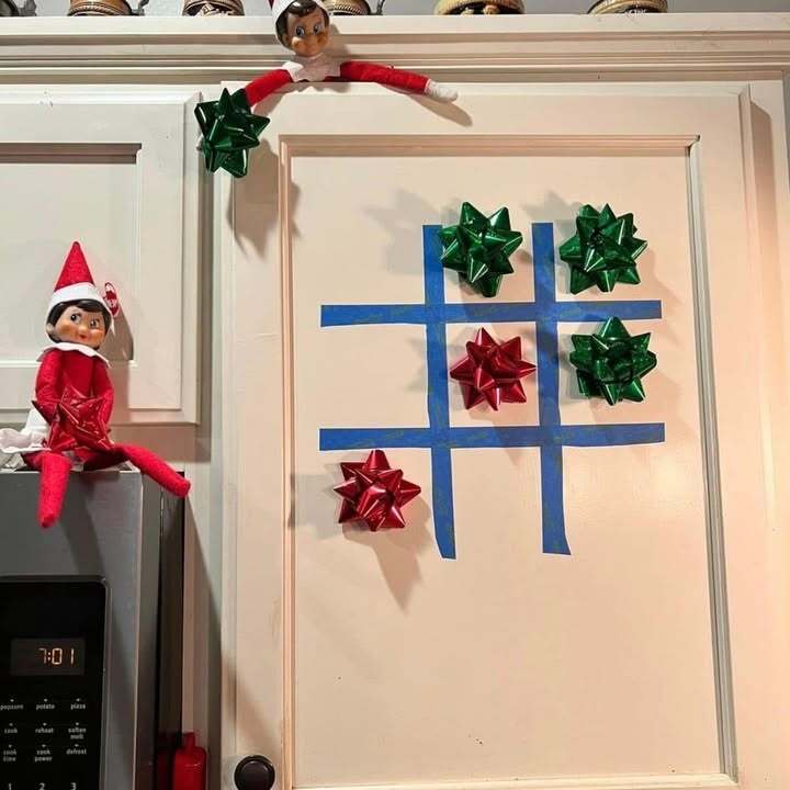 This adorable tic-tac-toe game uses festive gift bows as game pieces and painter’s tape for the board — simple, silly, and guaranteed to spark giggles in the morning.