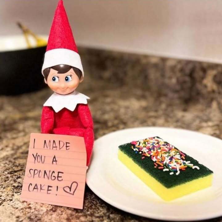 With a little sign announcing their “baking achievement,” your elves proudly present their culinary creation, blissfully unaware of the chaos in the kitchen.