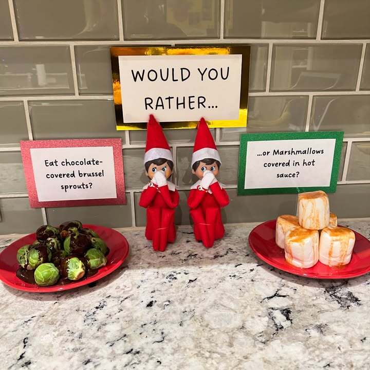 Kids love this one because it feels like the elves are inviting them into a silly game — and it might just inspire some giggly family dares at breakfast.