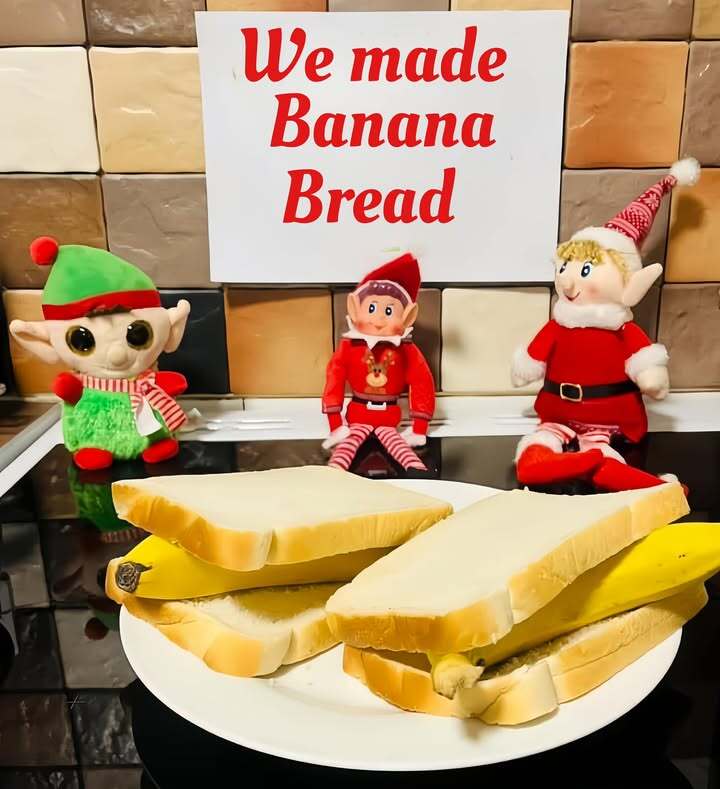 “Banana bread” elf style… meaning bananas inside bread slices.